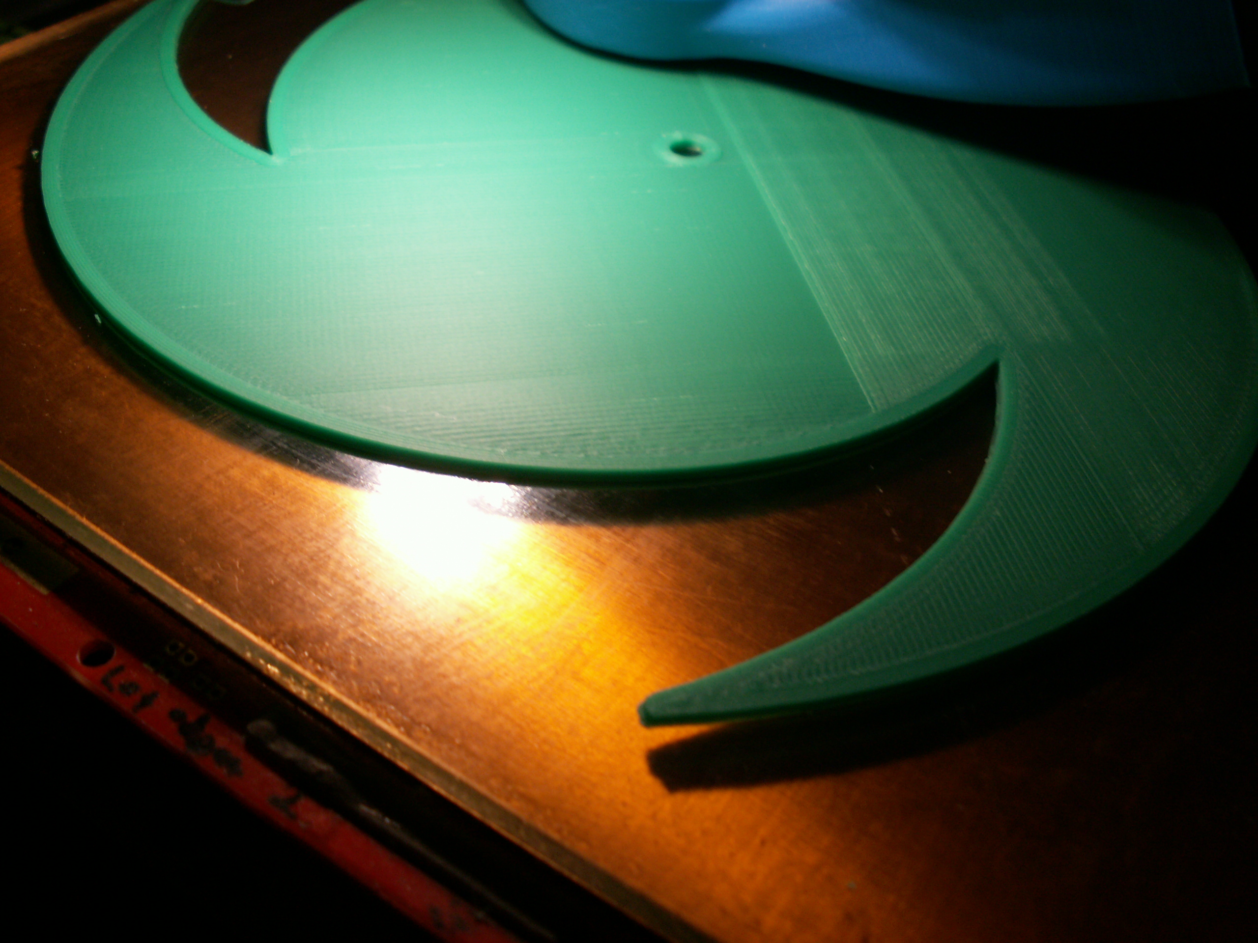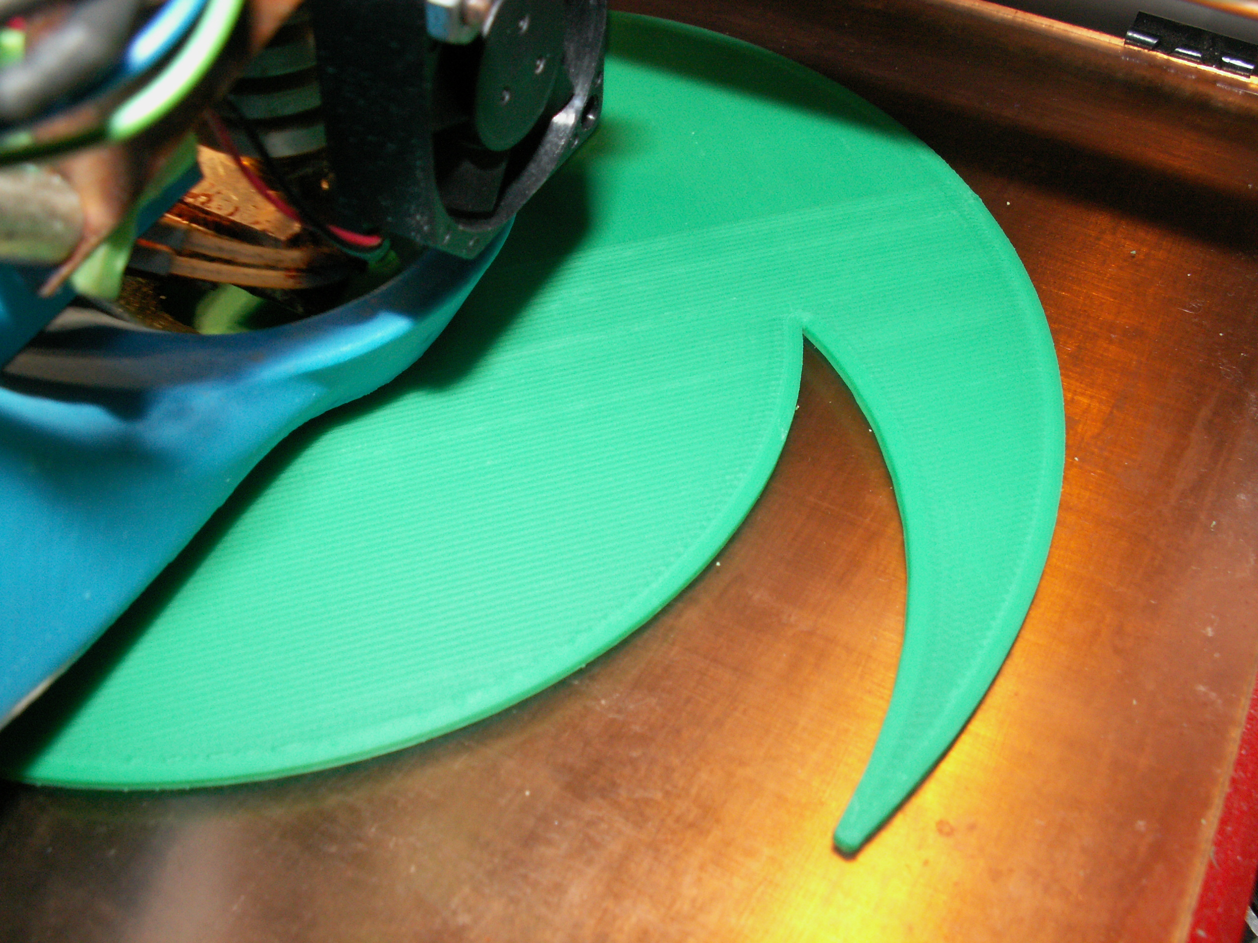 Topím to na 255°C, rychlost 50, bed 110°C a celokov (tryska .4 a vrstva .3 mm). Když jsem měl teplotu hotendu menší a rychlost 60, vlákna se vůbec nespojila, i malou silou to šlo rozlámat. Tak jsem rychlost snížil a teplotu zvýšil, ale není to stejně moc dobré, občas to prskne a stejně se mi to nezdá moc pěkně spojené do sebe jako v případě PLA.
